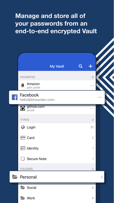 安全专家建议您为每一个账户使用不同的随机密码。但是要如何管理这些密码呢? bitwarden 可以让您轻松的创建、保存并访问您的密码。