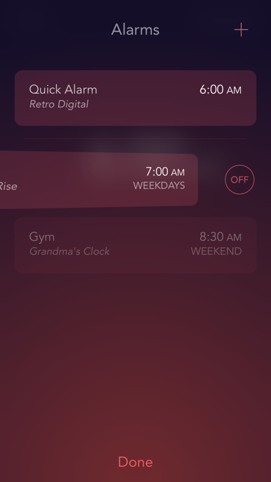 轻松创建重复警报随时为每个警报使用自定义标签。在一个屏幕上打开或关闭所有警报。打开应用程序时,Rise总是显示下一个警报。