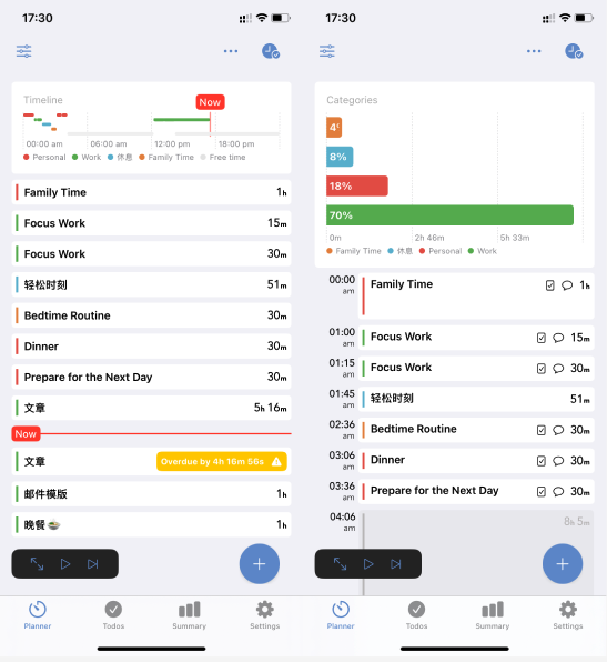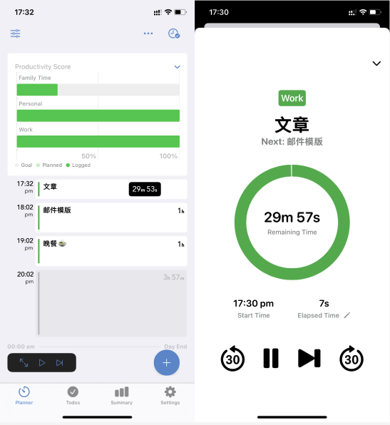 - 自由职业者: 用实时活动功能在做设计时随时延长 / 跳过任务,通过生产力评分表优化每天的工作时长分配