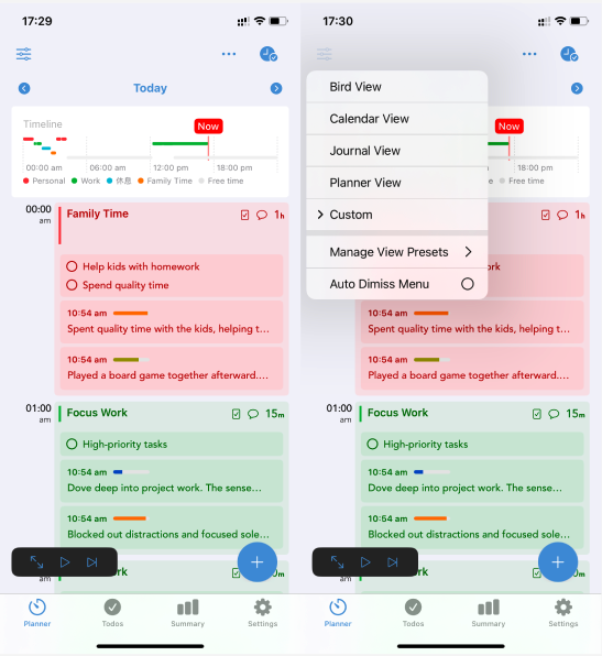 内置的「倒计时计时器」简直是拖延症克星!它会让你像拆盲盒一样,一次只面对一个任务 —— 当前任务倒计时结束后,轻轻上滑就能无缝切换到下一项📱。亲测用它规划工作日:先花 25 分钟啃完报告,休息 5 分钟喝杯咖啡,再切入设计稿环节,这种 “单线程专注 + 平滑过渡” 的模式,比传统番茄钟更懂打工人的节奏~
