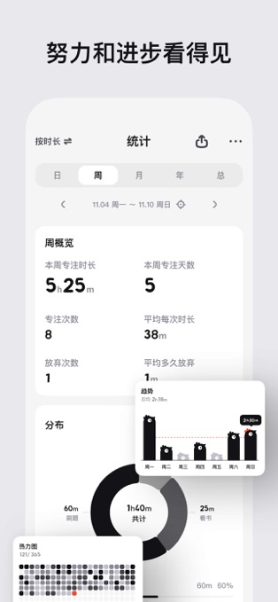 【简洁易用】直观的设计,零学习成本,一键开启专注,随时随地进入高效状态!