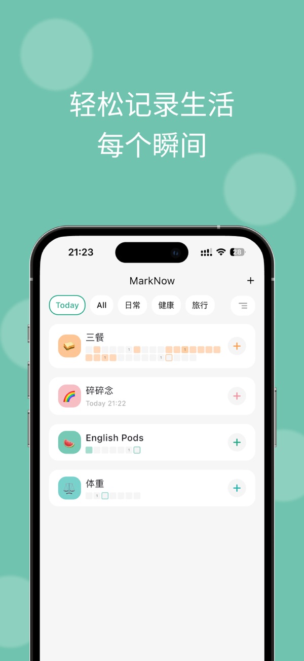 MarkNow,一款优雅的生活记录工具,助您轻松追踪日常点滴。通过直观的数据可视化和智能分析,发现生活规律,培养良好习惯。支持多样化记录,自定义模板与分组管理,界面简洁优雅。提供清晰日历、时间轴、精美图表等,助您洞悉生活细节。更有Pro版特权如iCloud同步、高级分析等,保障数据安全。开始记录生活,让每一天都更有意义。