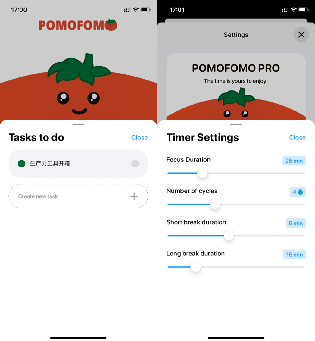 每个人的工作学习节奏不同,PomoFomo 当然懂你!你可以根据自己的偏好和需求,自由调整番茄钟会话和休息时间长度🕒,打造专属的高效节奏。