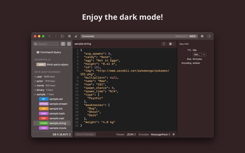 Mergeek 推荐:「Medis 2」是新一代的、优美、专业的 Redis 客户端。它是由 Redis 专家设计和开发的,使得它可以应对各种专业的场景。Medis 性能出色,可以在百万级别键中流畅使用,更加入了很多贴心功能,让你在实际工作中事半功倍。