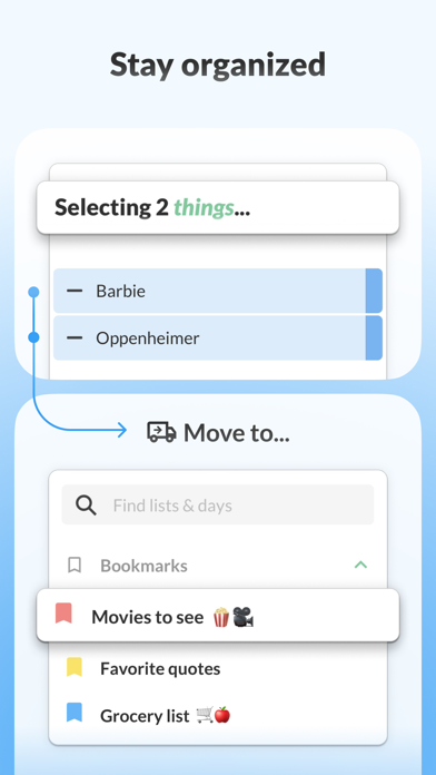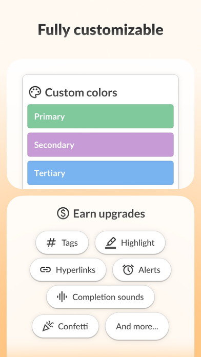 不要担心繁琐的事项记录下来会扰乱思绪,「Twos」具有极有条理和逻辑的分类,帮助你专注于每天要做的,或者通过清单去整理完成。你可以添加不同的特定清单,比如采购清单,帮助你在超市采购是面面俱到;你可设置待办事项,并为其添加标志,代表优先级;你的所有记录都根据完成状态进行分类,并且在你完成时有飘彩带的动画和你一起庆祝,为你繁忙的时间里带来愉悦。