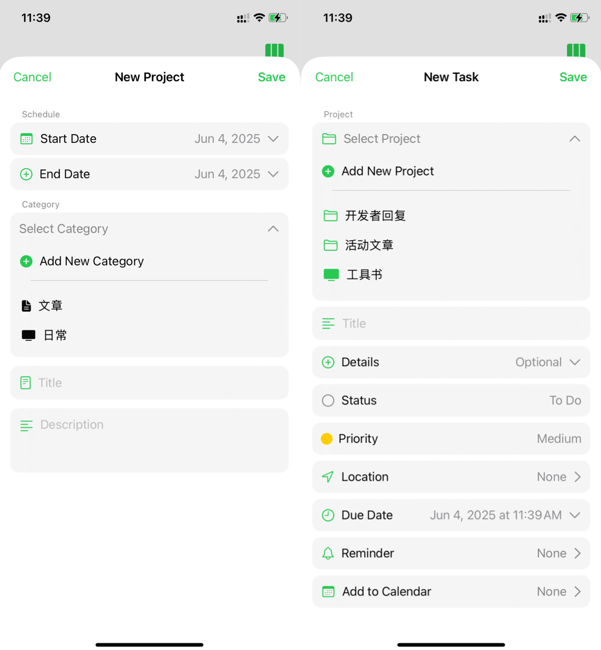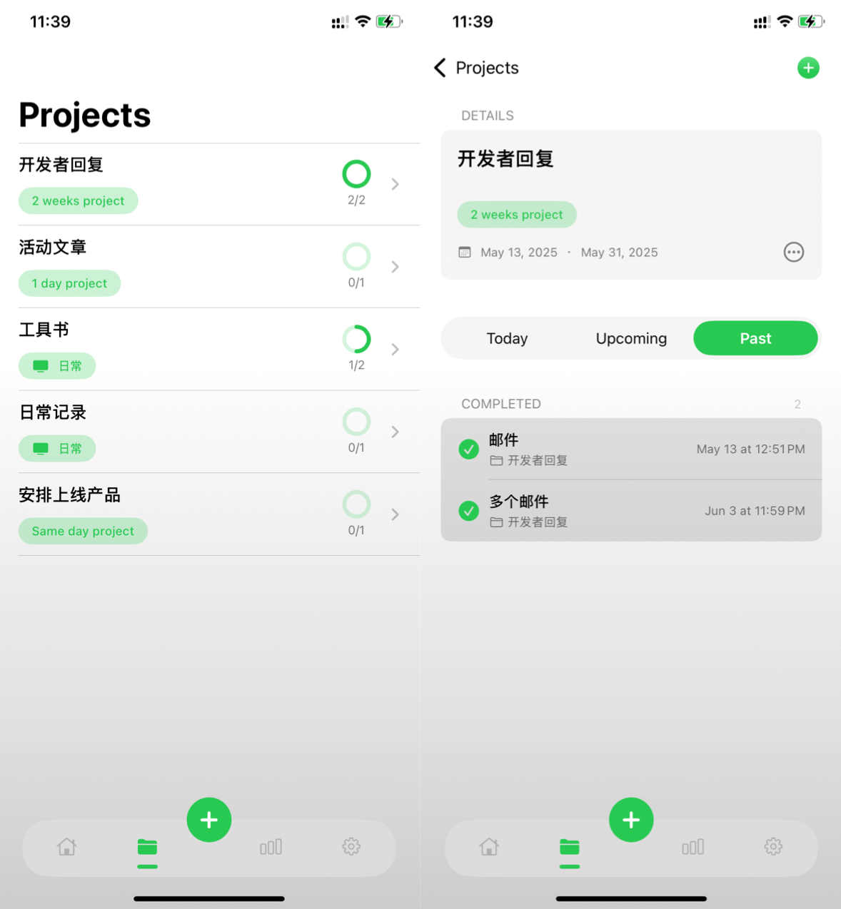 所有任务都以项目(project)为导向,你需要先创建一个项目,再在项目下添加具体任务。这样一来,你能清晰地知道每项任务的目标和意义,避免盲目忙碌。未完成的任务被分为 “待办” 和 “进行中”,并可设置完成时间与提醒,还能区分低、中、高三个优先级,让任务管理更有条理。