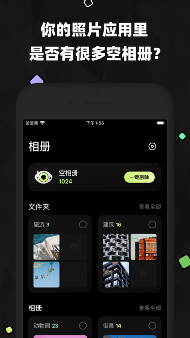 空空相册,智能清理空相册,一键批量删除,省时省力。更支持新建、重命名、移动、删除相册和照片,轻松管理相册与文件夹。收藏、隐藏、批量操作,管理你的全部图片,让相册井然有序。让照片管理更轻松,打造井井有条的相册。