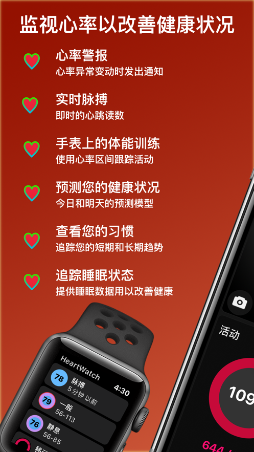 HeartWatch是专为Apple Watch用户设计的健康数据管理工具,提供全面的心率监控与智能分析。无用户跟踪、无广告插件,保障用户隐私。应用可获取Apple Watch的所有健康数据,并生成详细趋势分析,包括心率、血压、心率变异性等。支持后台心率警报、个人心率记录及智能活动目标设定。此外,HeartWatch还具备体能训练分析、GPS地图显示及自定义提醒功能,支持从手表至手机的体能训练数据同步。支持导出所有健康指标和体能训练数据,方便用户向医疗执业者展示数据。确保您的健康信息始终受到保护,是关注个人健康不可或缺的工具。