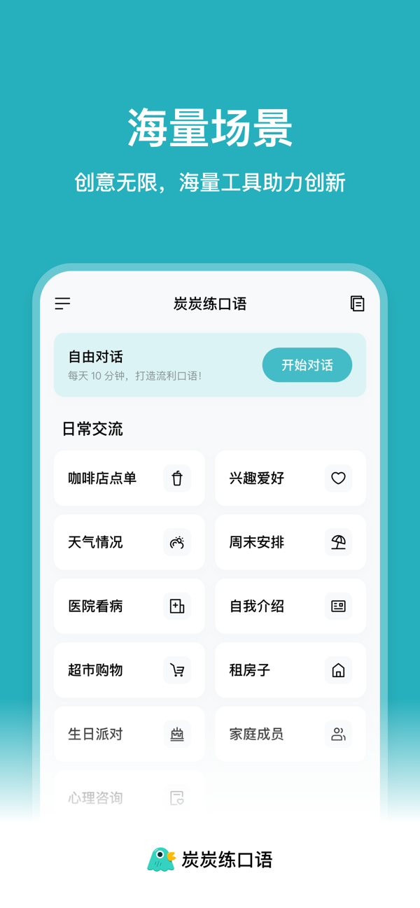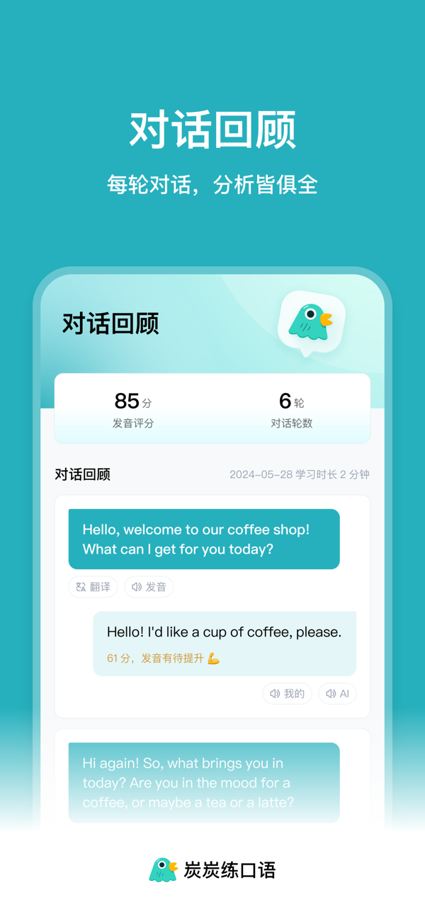 炭炭练口语专为提升你的英语口语能力而设计,提供多元情景对话、智能语音识别与评估以及自主学习功能。无论你处于求职面试、出国旅行还是考试测评阶段,都能通过丰富实用的对话内容、标准发音示范以及专业的发音评估,随时随地利用碎片化时间学习,有效克服开口说英语的心理障碍,建立开口自信。下载炭炭练口语,开启高效、便捷、有趣的英语口语学习之旅。