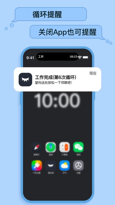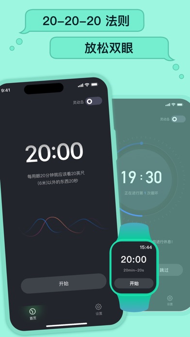 【放松双眼】App根据这一原则,提醒您定时休息,保护眼睛健康。