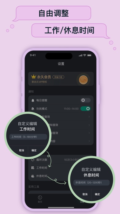 - 自定义工作时间&休息时间